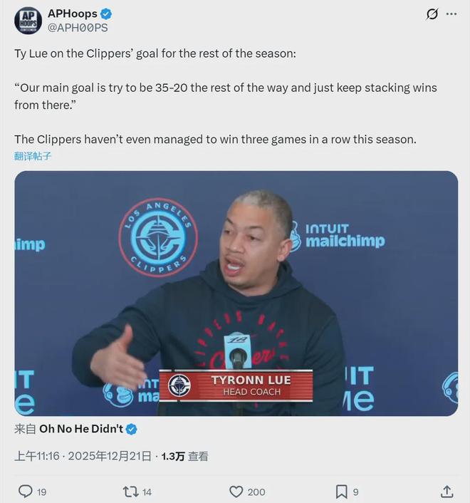 北京时间12月21日,NBA常规赛:快船队主场迎战湖人队。由于今天鹈鹕队击败了步行者队,快船队暂时排名西部垫底。赛前,快船队取得6胜21负的战绩。泰伦卢在发布会上大胆表示:“我告诉全队,在接下来的55场比赛中我们至少要取得35胜20负,或者更好!”也就是说,赛季结束时,如果快船队真的达到50%的胜率,他们将在NBA创造另一个奇迹!快船队首发阵容:哈登、邓恩、伦纳德、科林斯、祖巴茨。湖人首发阵容:东契奇、斯玛特、詹姆斯、拉拉维亚、海耶斯。八村塁、艾顿、里维斯和文森特缺席。快船队打出20胜7负的开局,单杆得分达到两位数。东契奇和伦纳德争夺数据。东契奇前6投0中,伦纳德前4投0中。好在快船队的其他首发球员实力都很强,继续击败湖人队。机智首节还剩1分20秒,祖巴茨篮下抛投,落地时踩到了詹姆斯的脚。他因伤退出了比赛。首节战罢,快船队以28-15领先湖人队13分。湖人队本赛季首节场均得到30.5分,他们的进攻现在已经彻底崩溃了。东契奇单节10投2中,仅得到5分4篮板0助攻2失误。詹姆斯7中3得到7分,其他数据为0。湖人队首节三分球11投1中,快船队三分球10投4中。第二节湖人队三分球8投1中。好在他们的两分球命中率有所回升,单节拿下24分。伦纳德夫人火力全开,第二节7投4中得到15分。快船队除伦纳德外,其余球员单节合计贡献11分。半后此役,快船队以54-39领先湖人队15分。湖人队有7次助攻和6次失误。半场结束,湖人官方宣布东契奇左腿挫伤,本场比赛不会复出!此役,东契奇13投4中,得到12分5篮板2助攻,还有4次失误。詹姆斯半场16投7中,得到16分1篮板0助攻。快船方面,伦纳德半场得到15分5篮板,哈登10分5助攻2失误。越不准确,您就越需要投票。湖人队第三节三分球10投2中,前三节三分球29投4中。他们的三分球命中率只有可怜的13.8%。湖人队投中38个两分球,仅比三分球多9个。三节战罢,快船队80-61领先19分。第四节,斯玛特的投篮落在桑德斯脚上,裁判称后者为一级e 犯规。斯玛特3罚3中,詹姆斯上篮打成2+1,湖人队一度追到7分。科林斯三分球帮助快船队止血,哈登也打成3+1,直接杀死湖人队的反击。最后4分钟,快船队领先15分,湖人队的局面已经结束。全场比赛结束,快船队以103-88击败湖人队,升至西部倒数第三。伦纳德32分12篮板3助攻3抢断2盖帽,哈登21分4篮板10助攻2抢断,科林斯17分12篮板!创造詹姆斯28投15中,得到36分4篮板3助攻2抢断。他的得分创下了个人赛季新高。詹姆斯以40岁零356天的年纪,超越诺维茨基,成为NBA最年长得分30+的球员。最后看数据: